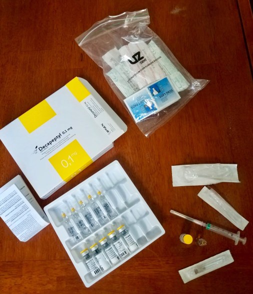 There is a downside to Marie producing so many eggs: it puts her at a higher risk for developing ovarian hyper-stimulation syndrome (OHSS), where the ovaries become painful and swollen. In order to mitigate the risk, our clinic puts anyone who produces more than 15 eggs on Cetrotide injections. So although we thought Marie had had her last encounter with a needle, she’s now being treated to 7 more days of daily stomach injections.